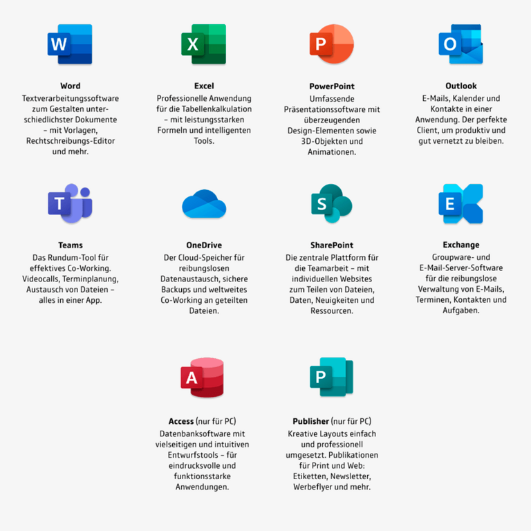 Microsoft 365 beinhaltet eine Vielzahl unterschiedlicher Apps. Hier die 10 wichtigsten Anwendungen für Sie im kurzen Überblick.