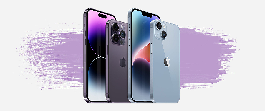 Nicht ohne Grund bewirbt Apple das iPhone 14 Pro bzw. das iPhone 14 Pro Max mit dem Claim „Das Non Plus Ultra“. Schließlich handelt es sich um die beiden Modelle mit dem Maximum an Leistung und Funktionsumfang im aktuellen iPhone Lineup. Wer das iPhone 14 Pro (Max) mit den Vorgängermodellen vergleicht, stellt fest, dass sich optisch kaum etwas getan hat. Nennenswerte Unterschiede im Hinblick auf die Hardware sind im Bereich des Prozessors sowie bei den Kameras zu finden. Mit dem A16 Bionic setzt man abermals Maßstäbe in Sachen Leistung und Effizienz. Beim verbesserten Triple-Kamera-System hat sich Apple auf die Aspekte Auflösung und Low Light-Fotografie konzentriert. So liefert das iPhone 14 Pro (Max) dank neuer Sensoren nun Aufnahmen mit bis zu 48 Megapixeln und bietet eine spürbar höhere Lichtausbeute für Situationen bei geringer Helligkeit. Der aus dem iPhone 13 bekannte Kinomodus bietet nun erstmals die Option für 4K-Aufnahmen. Selfiegraf*innen freuen sich über einen Autofokus der Frontkamera. Das kompakter gebaute iPhone 14 Pro passt trotz eines 6,1" großen Bildschirms gut in eine Hand und ist von den meisten Nutzer*innen daher auch einhändig bedienbar. Für Interessent*innen, die sich einen größeren Bildschirm wünschen, ist das iPhone 14 Pro Max mit seiner 6,7" großen Displaydiagonale die bessere Wahl. So oder so: Käufer*innen erhalten das Maximum an Performance, kombiniert mit der vielseitigsten Kamera sowie der ausdauerndsten Batterielaufzeit, die es beim iPhone zurzeit zu kaufen gibt.