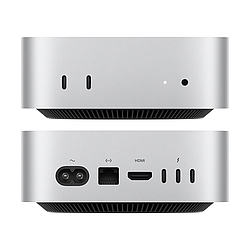 Der Mac mini bietet jede Menge Anschlüsse. In Zahlen ausgedrückt: 2-mal USB-C und ein Kopfhöreranschluss auf der Vorderseite, auf der Rückseite des ultramobilen Kraftpakets finden sich Anschlüsse für HDMI und Ethernet sowie gleich 3 Thunderbolt-Ports. Somit ist der Mac mini für jeden Schreibtisch optimal ausgestattet.